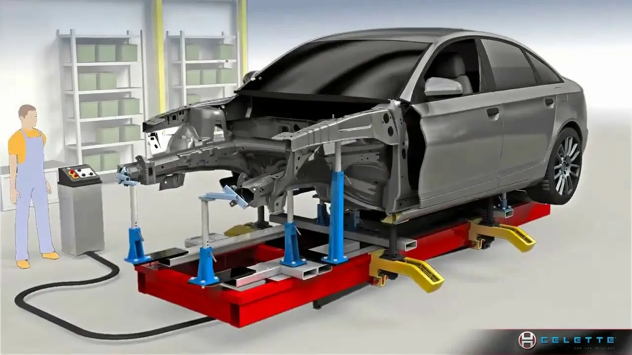 Durch den Einsatz einer Richtbank wird eine Reparatur von Kraftfahrzeugen um ein Vielfaches